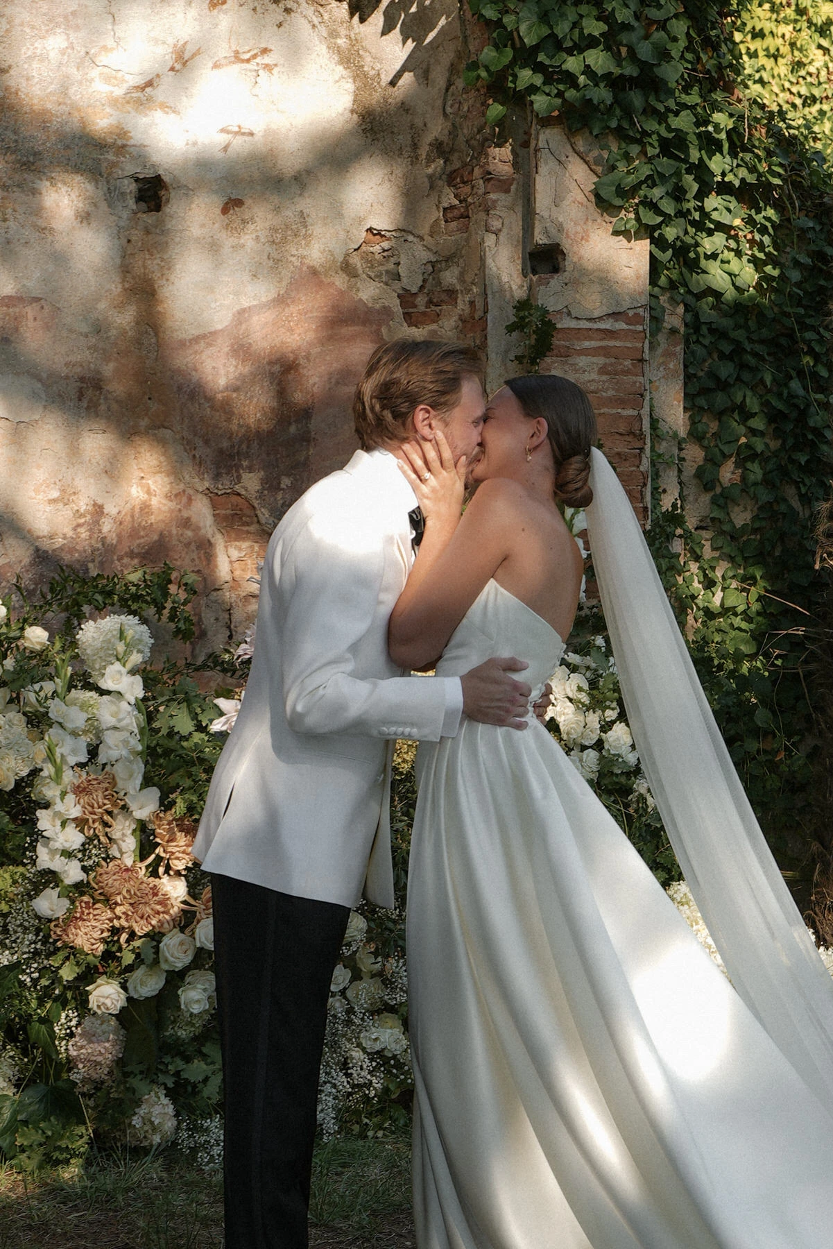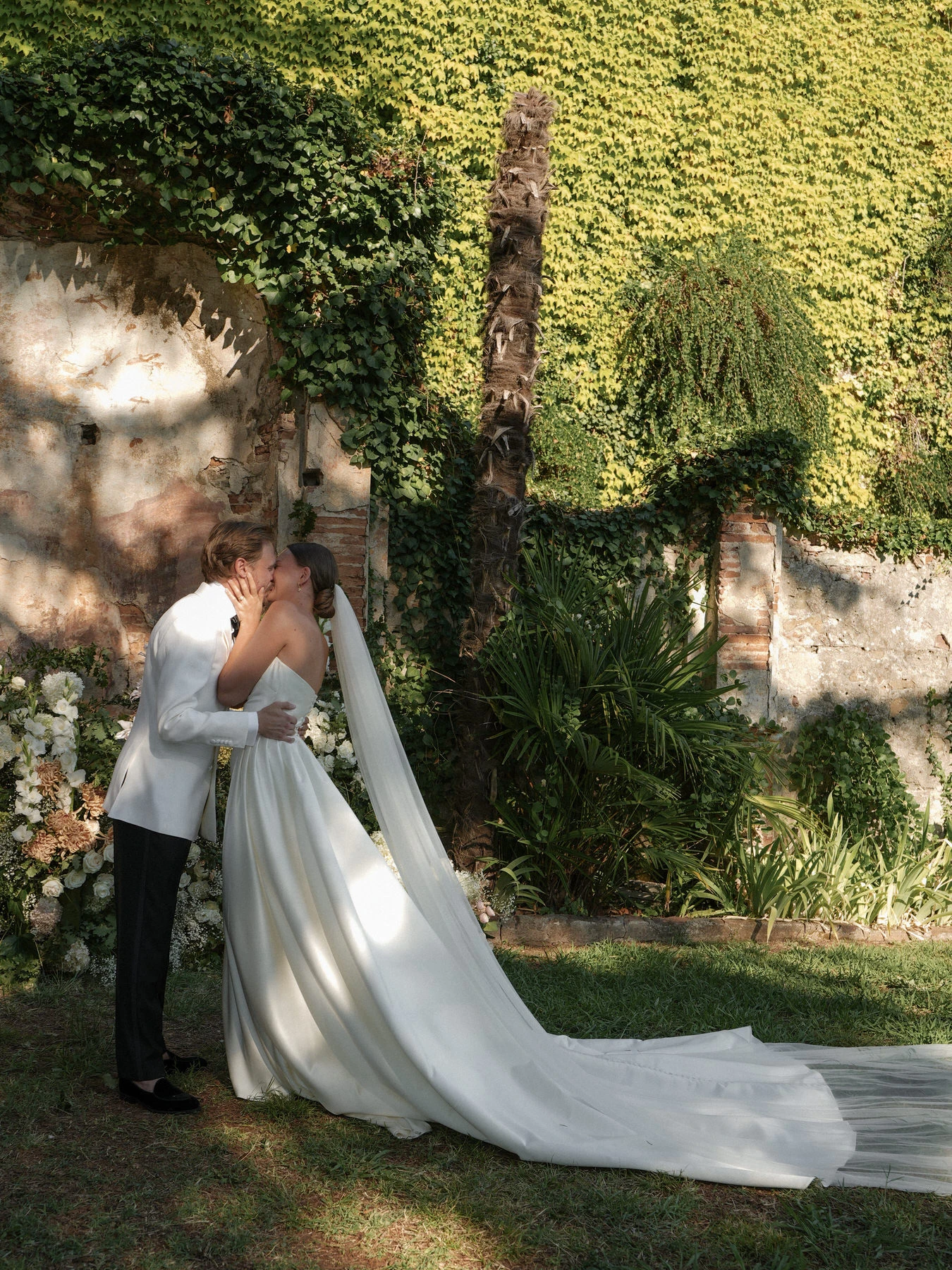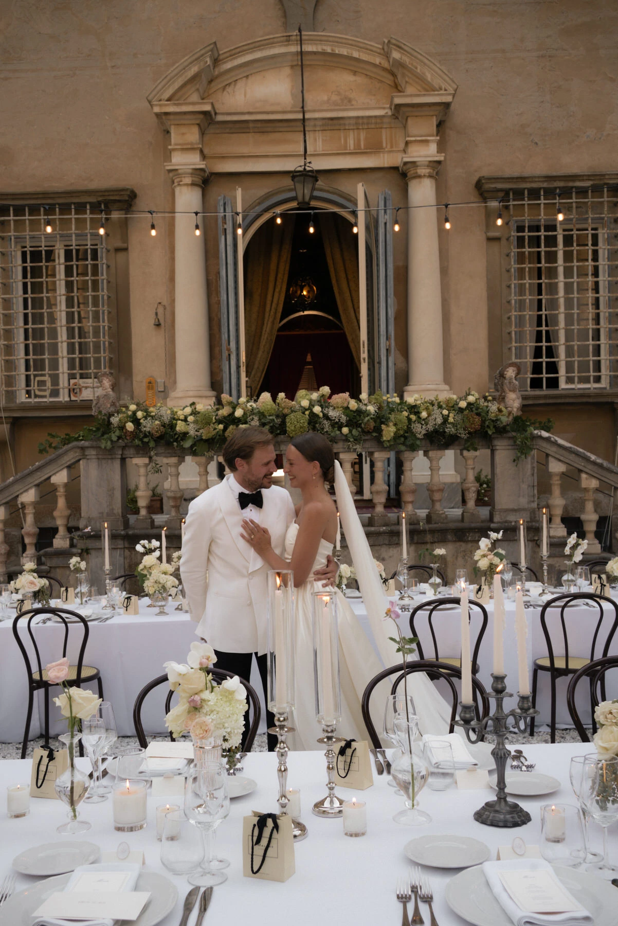 On the wedding day, the gardens of Villa di Corliano offered a stunning setting for the ceremony. The timeless elegance of this historic Tuscan villa, combined with carefully designed floral arrangements, elegant styling, and a beautifully coordinated timeline, created an unforgettable experience for both the couple and their guests.