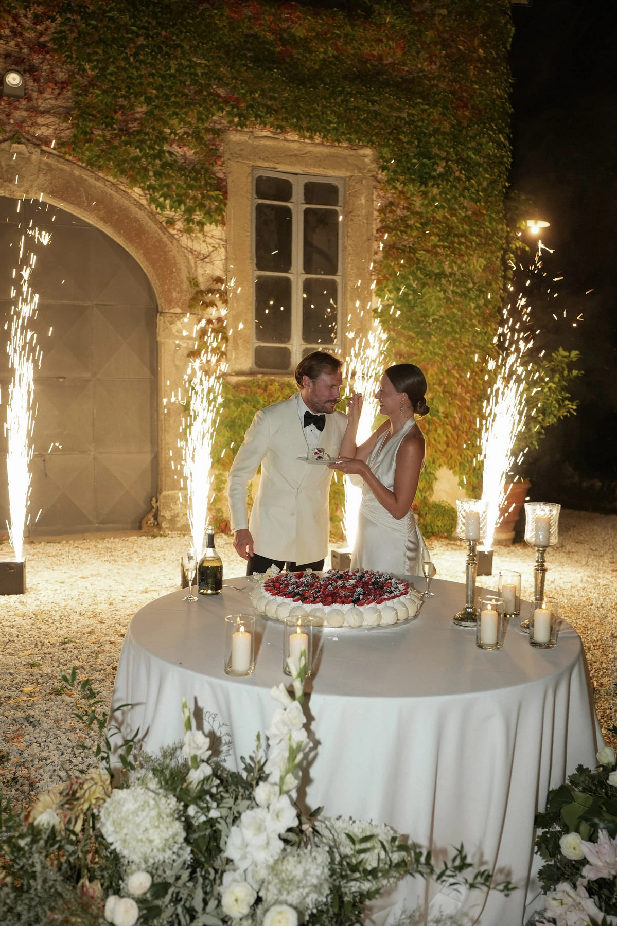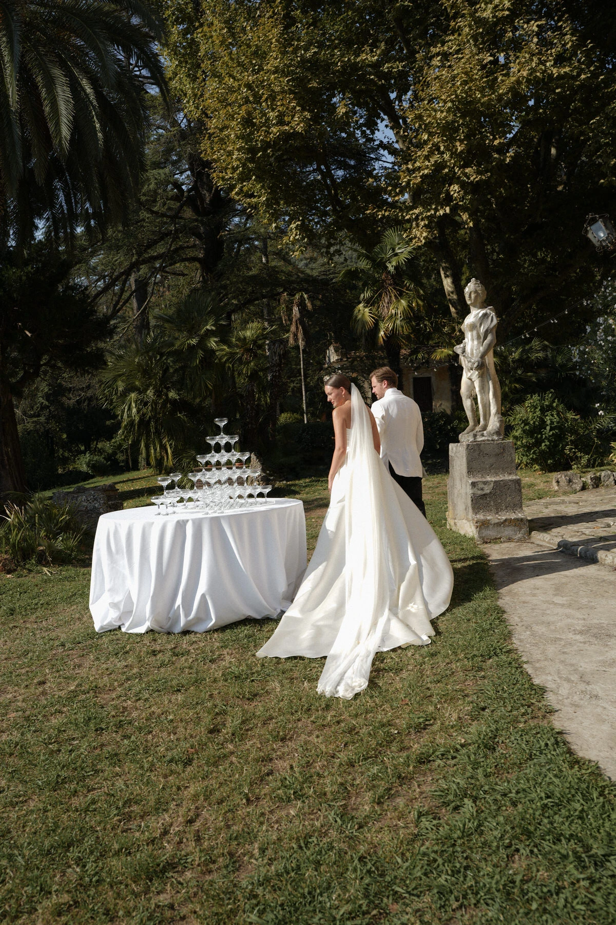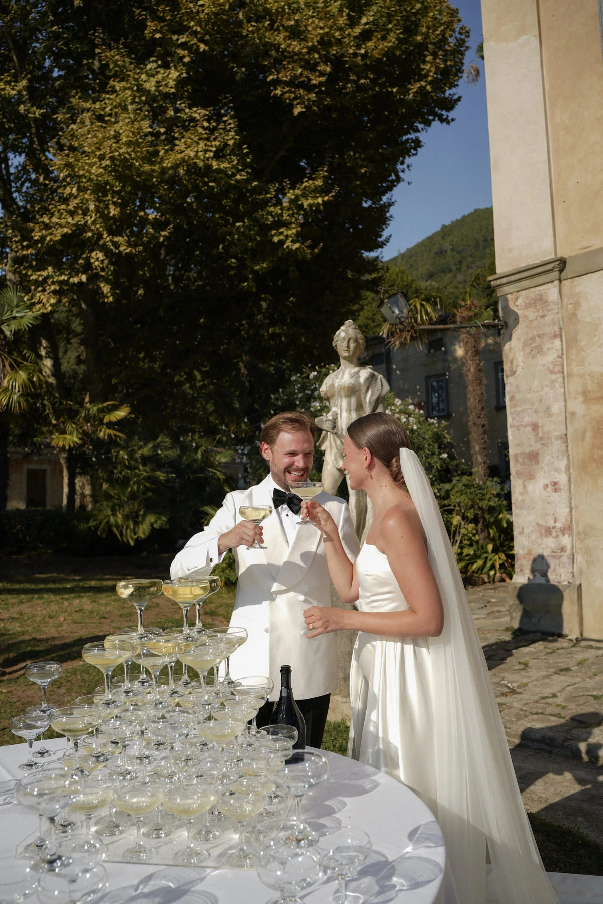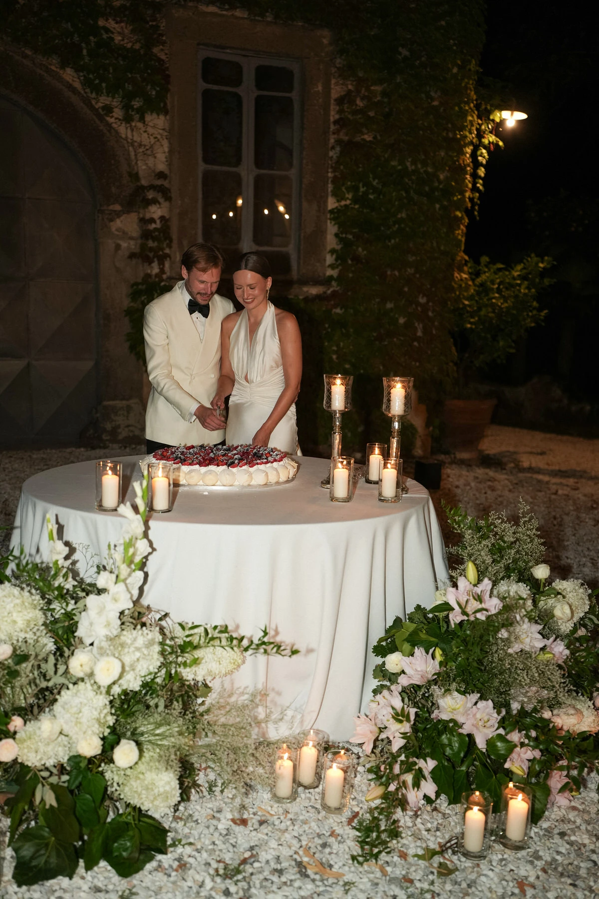 On the wedding day, the gardens of Villa di Corliano offered a stunning setting for the ceremony. The timeless elegance of this historic Tuscan villa, combined with carefully designed floral arrangements, elegant styling, and a beautifully coordinated timeline, created an unforgettable experience for both the couple and their guests.